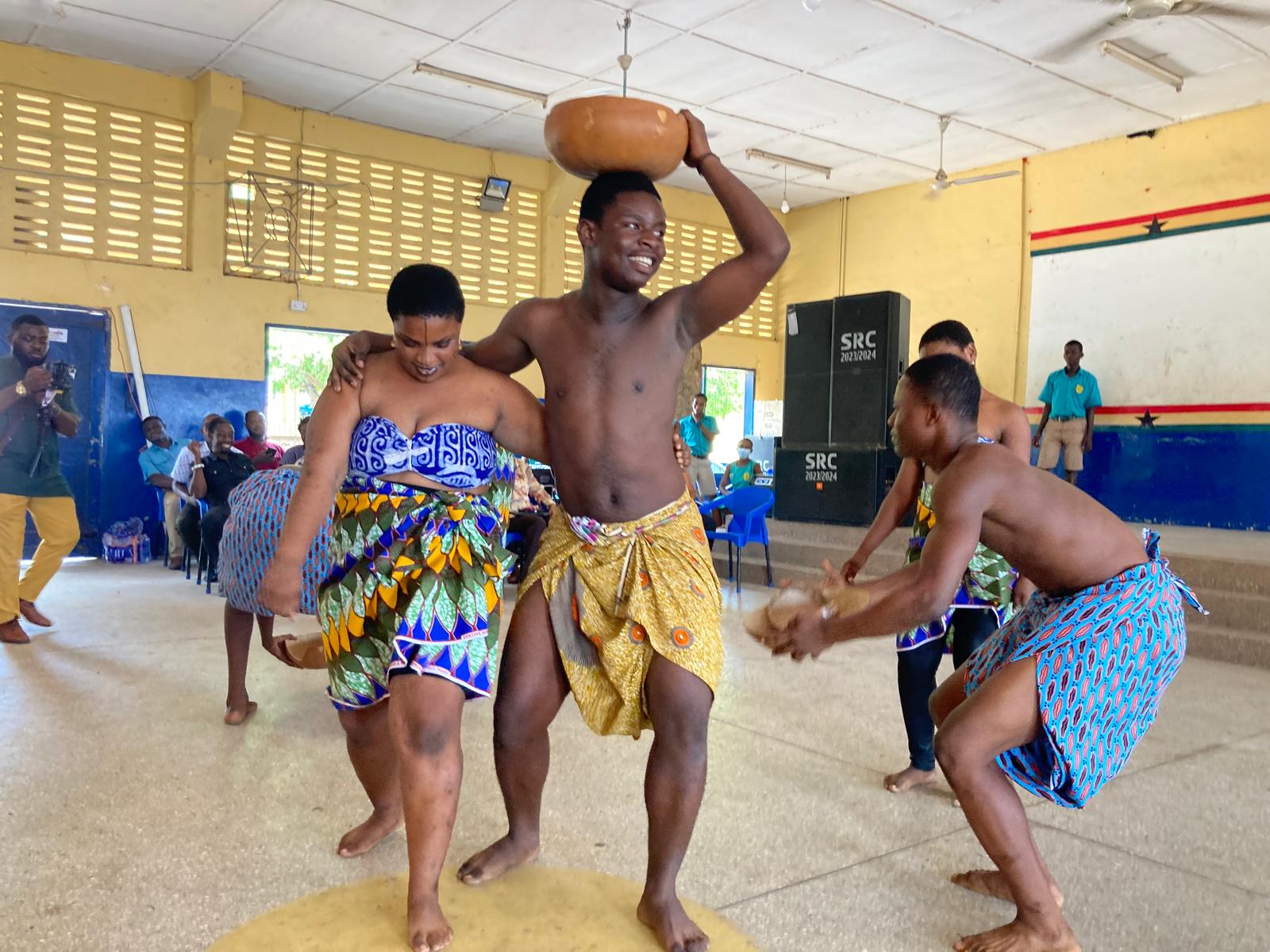 Nun sprach Ernestina Peniana, die Schulleiterin. Sie erläuterte wichtige Bestandteile des MOUs. Darauf folgte der Auftritt der Tanzgruppe. Sie führte ein Tanztheater auf, dass das Werben von drei Jungen um drei Mädchen zeigte. Begleitet wurde das Ganze von einer Musikgruppe mit Trommeln und Gesang.
