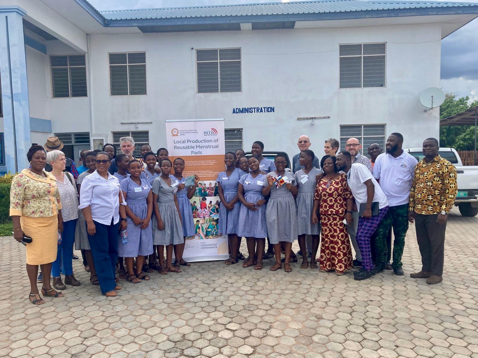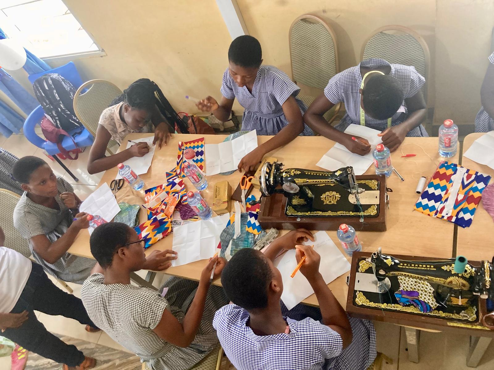Heute sind wir – wie bereits angekündigt – an der Mawuko Girls‘ Senior High School in Ho und werden dort parallel zwei Workshops für das Projekt „reusable Sanitary Pads“ (wiederverwendbare Damenbinden) durchführen. Bei der Begrüßung wurden alle teilnehmenden Gäste (Mitarbeiter des Gesundheitsministeriums, unterschiedliche NGOs, die beiden Vorsitzenden der „Grow Your Dream Foundation“, weitere Kolleginnen und Kollegen aus der Schule und natürlich die Mitglieder von SIPRI (Social Innovation and Poverty Relief Initiative) begrüßt. Anschließend teilten wir uns in zwei Gruppen auf: die Schülerinnen arbeiteten mit Caro, Petra und Kerstin (sie wechselte nach dem Mittagessen in die andere Gruppe) sowie Wilhelmina, einer Lehrerin aus dem Bereich „Home Economics“, auf Deutsch vergleichbar mit Hauswirtschaftslehre.