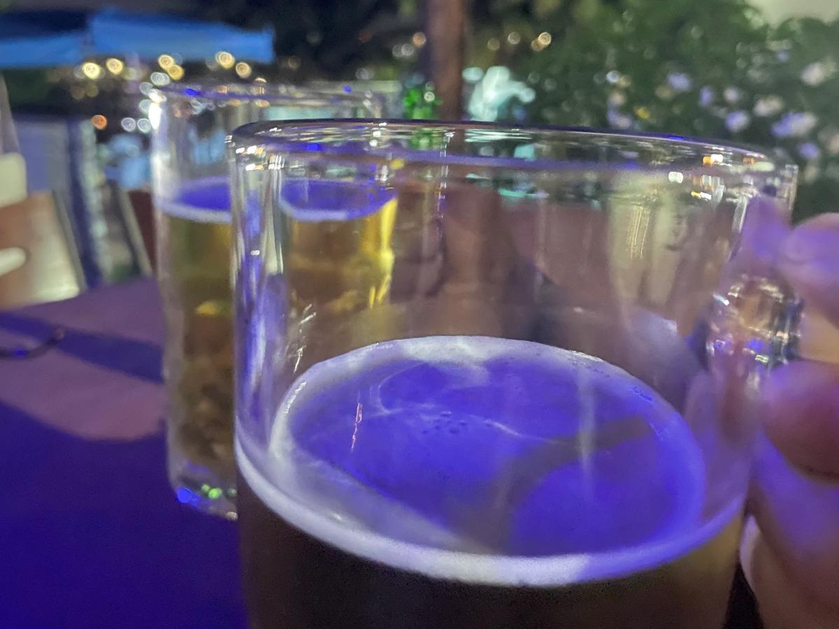 Am Abend probierten wir noch ein Restaurant in der Nähe unseres Hotels aus. Wir freuten uns sehr auf authentische ghanaische Küche. Leider waren von den vielen in der Karte aufgelisteten lokalen Speisen kaum etwas erhältlich, ganz im Gegensatz zu den eher international geprägten Angeboten. Wir entschieden uns dann für einen Fischeintopf (Abobi Tadi), der in erster Linie aus Mini-Sardellen (Amane) bestand. Dieser wird normalerweise mit Akple gereicht, einem festen Kloß aus Mais- und Cassavamehl, der besonders in der Volta-Region die Standardbeilage zu diesem Fischeintopf ist.