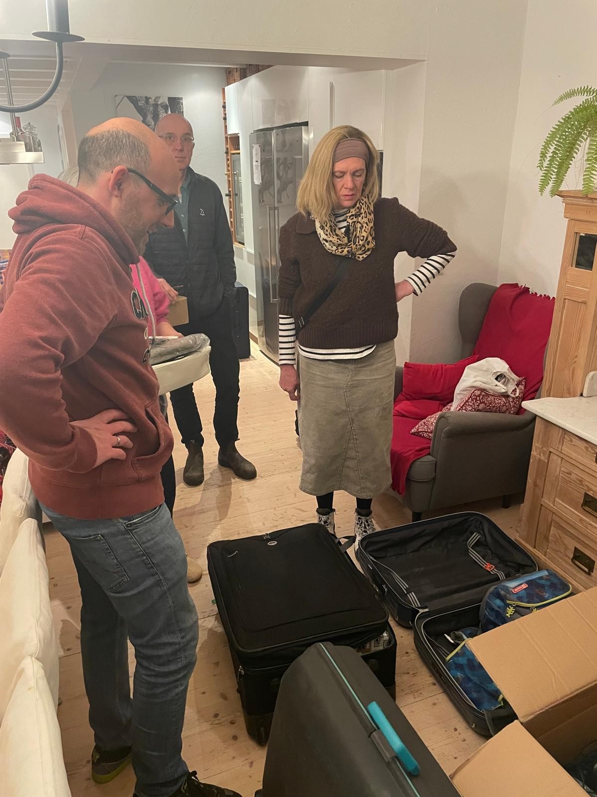 Zu diesem Zweck haben sich 6 der 7 Mitreisenden am Freitag getroffen, um letzte Details zu besprechen, aber vor allem, um die zusätzlichen Koffer möglichst effektiv zu packen.