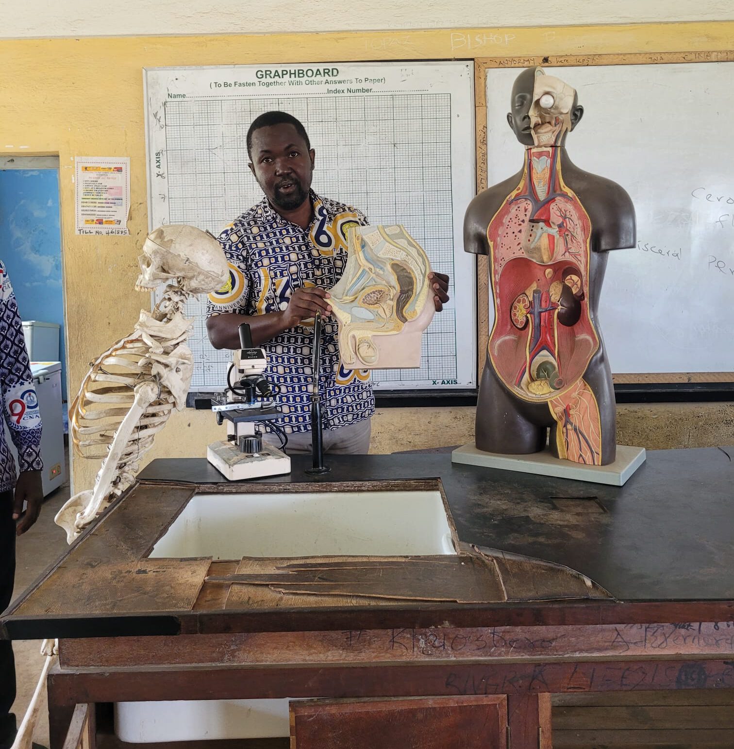 Kenneth holte uns um kurz vor neun ab und fuhr uns mit dem Pickup zur Awudome Senior Highschool. Dort wurden wir herzlich von Ernestina empfangen, die seit Bestehen dieser Schule vor gut 60 Jahren, die erste Frau als Schulleiterin ist. Ernestina ist sehr erfolgreich in ihrem Beruf und wurde mit der Übernahme der Leitung beauftragt, weil die Schule vor großen Herausforderungen steht und sie eine kompetente Leiterin mit kollegialem Führungsstil ist, welche die Schule unseres Erachtens nach gut gebrauchen kann. Übrigens war Ernestina vor gut dreißig Jahren selbst Schülerin dieser Schule.