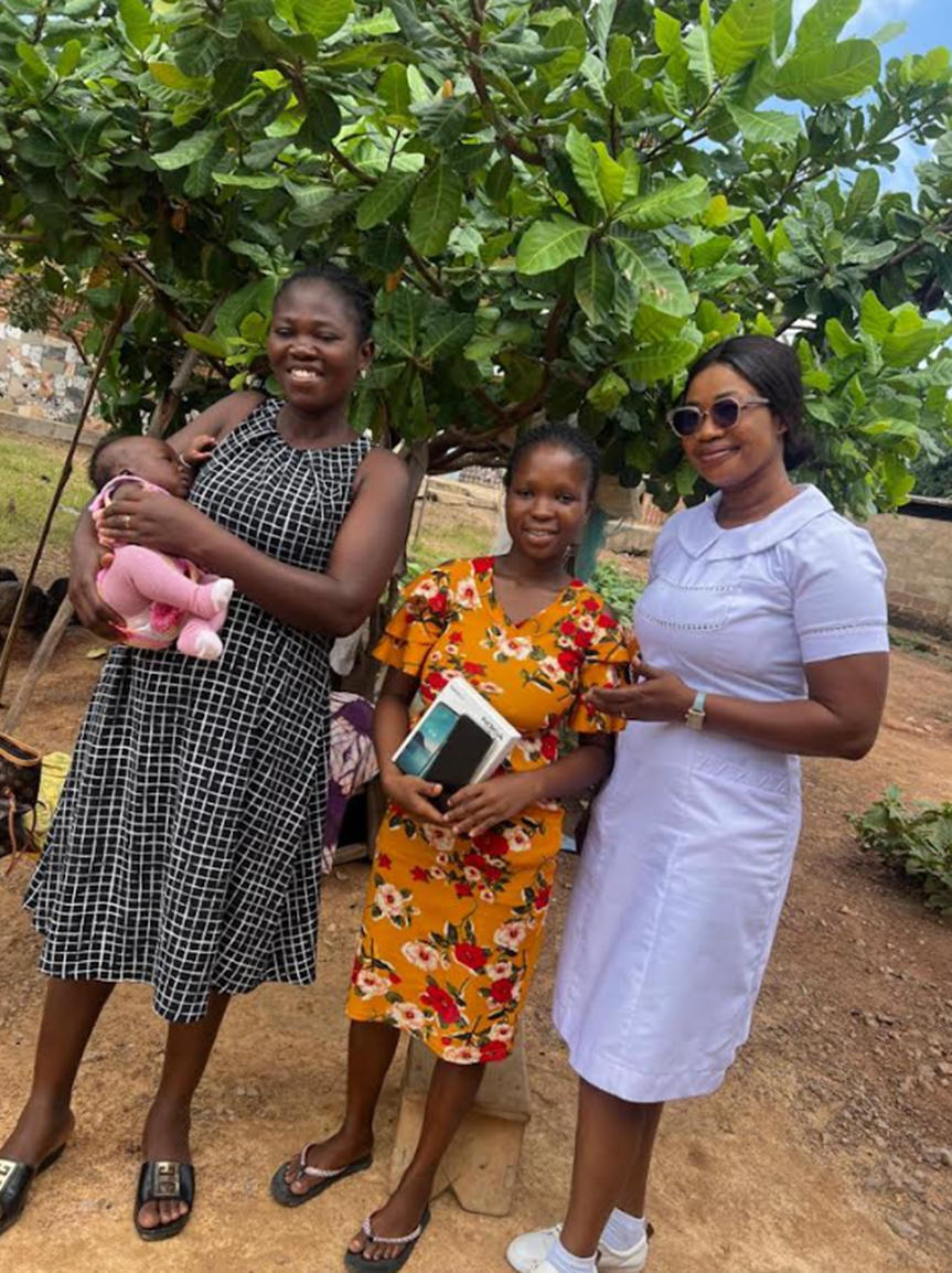 One story that shows the impact of this initiative is Bridget’s. In September 2025, Bridget, a 16-year-old nursing mother from Sunyani, joined the WhatsApp group for pregnant women and young mothers. Initially, she did not have a smartphone and could not participate. After her case was presented to HITA members, a smartphone was donated to her. During her antenatal period, Bridget had limited access to essential health information. Recognizing her situation, Patricia and Esther from HITA visited her at home to understand her challenges and aspirations. Bridget shared her financial struggles and her strong desire to return to school while caring for her baby. Through the WhatsApp group, she began receiving educational materials, emotional support, and practical guidance. These resources helped her gain confidence and knowledge to care for her child while pursuing her personal goals.